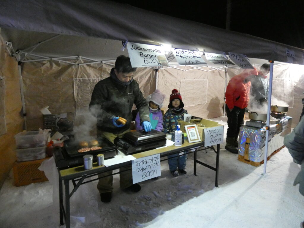 当日は飲食の提供も行い、ジャクソンビルバーガーさんのジューシーなハンバーガーは特に人気で、多くの方に楽しんでいただきました。